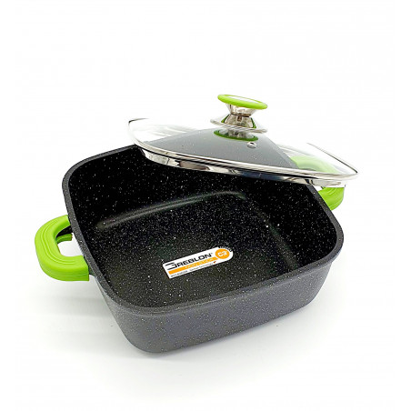 Les passionnés de cuisine découvriront l’inégalable robustesse du revêtement pierre céramique GREBLON® C3+ du faitout carré 28 cm et de la poêle 28 cm Espace Cuisine Professionnel.