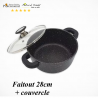 Le faitout 28 cm et la poêle 28 cm sont fabriqués à partir d’une structure en fonte d’aluminium de 5 mm d’épaisseur, assurant :