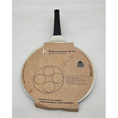 Poêle pancake KLAUS 4 empreintes de 10 cm, en fonte d’aluminium avec revêtement céramique sans PFAS ni PFOA. Cuisson saine sans matière grasse, compatible tous feux dont induction, idéale pour pancakes, blinis et mini crêpes.